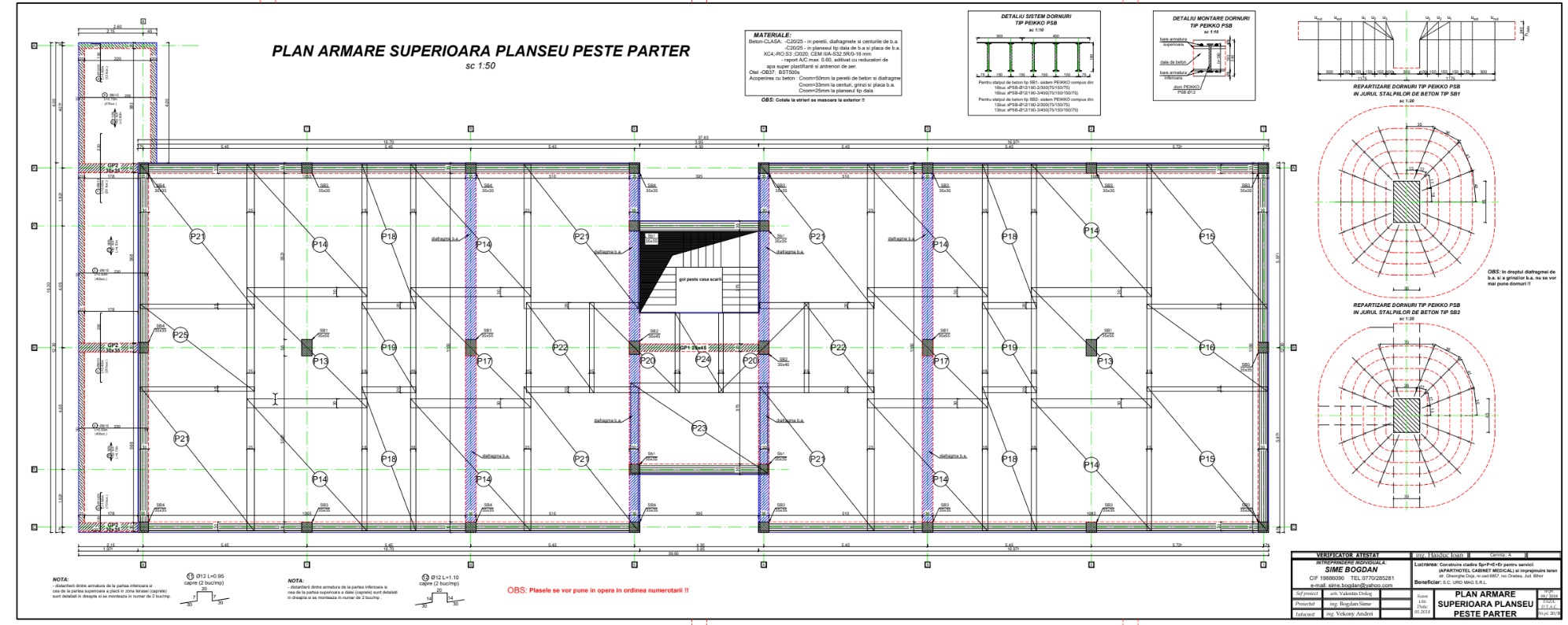 • Dosar complet 1-43/R: Fundații, planșee, armare, detalii scări, diafragme
