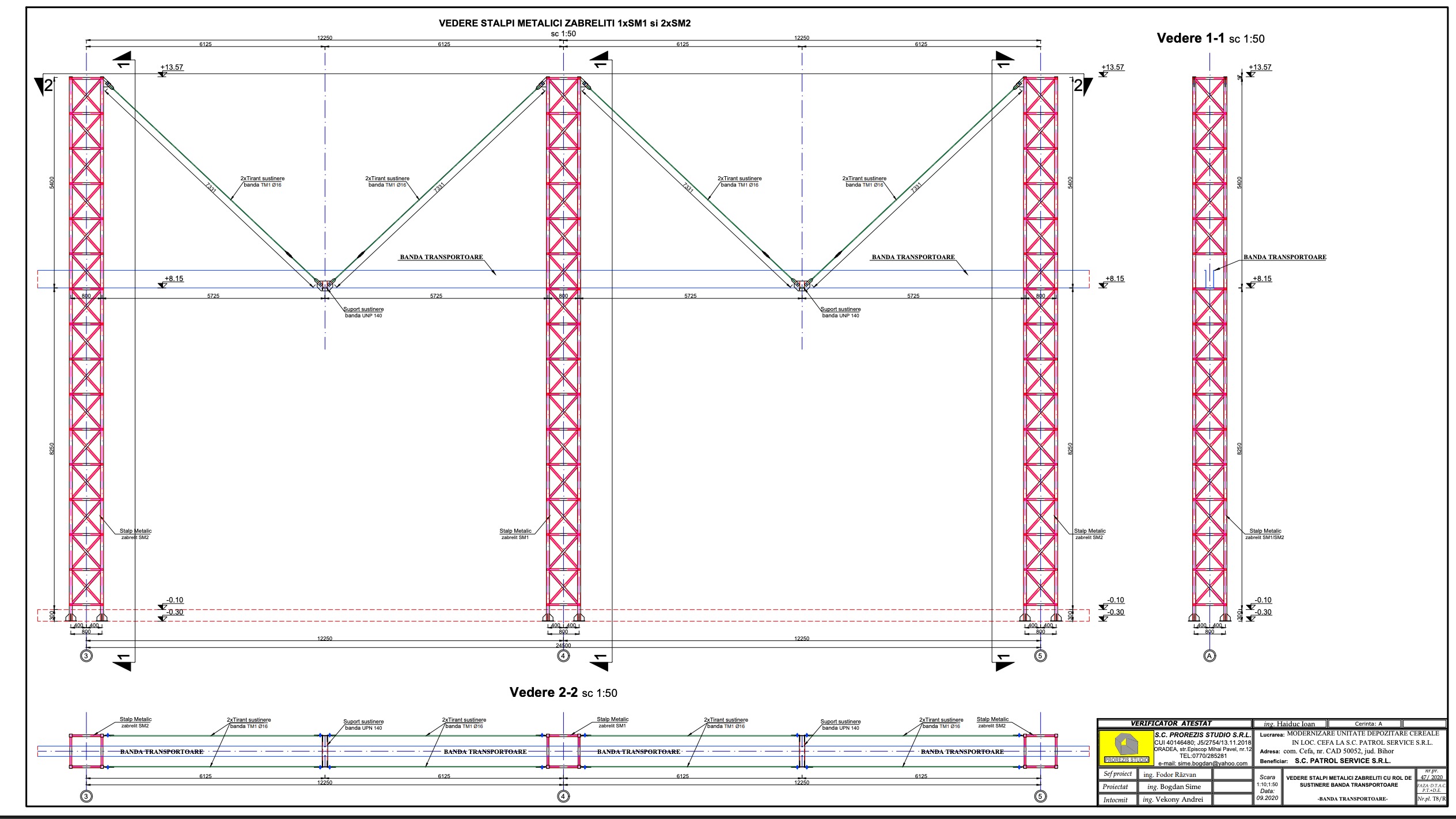• Ob.3: Hală depozitare cereale nr.1 (ferme metalice 29.55m, cadre fronton, contravantuiri)