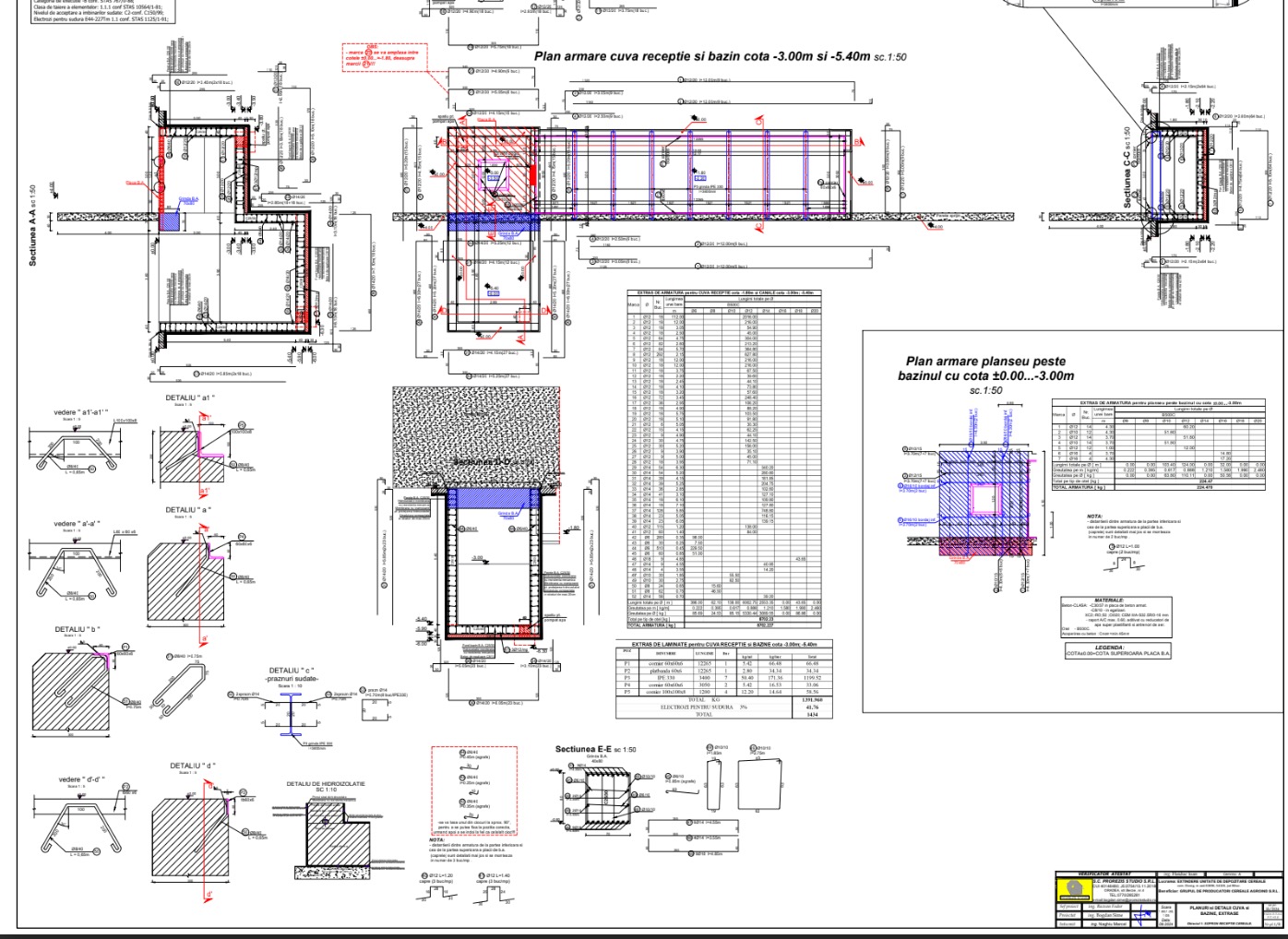 • Detalii armare bazin/cuvă + cameră de praf (Ob.3 și Ob.4)