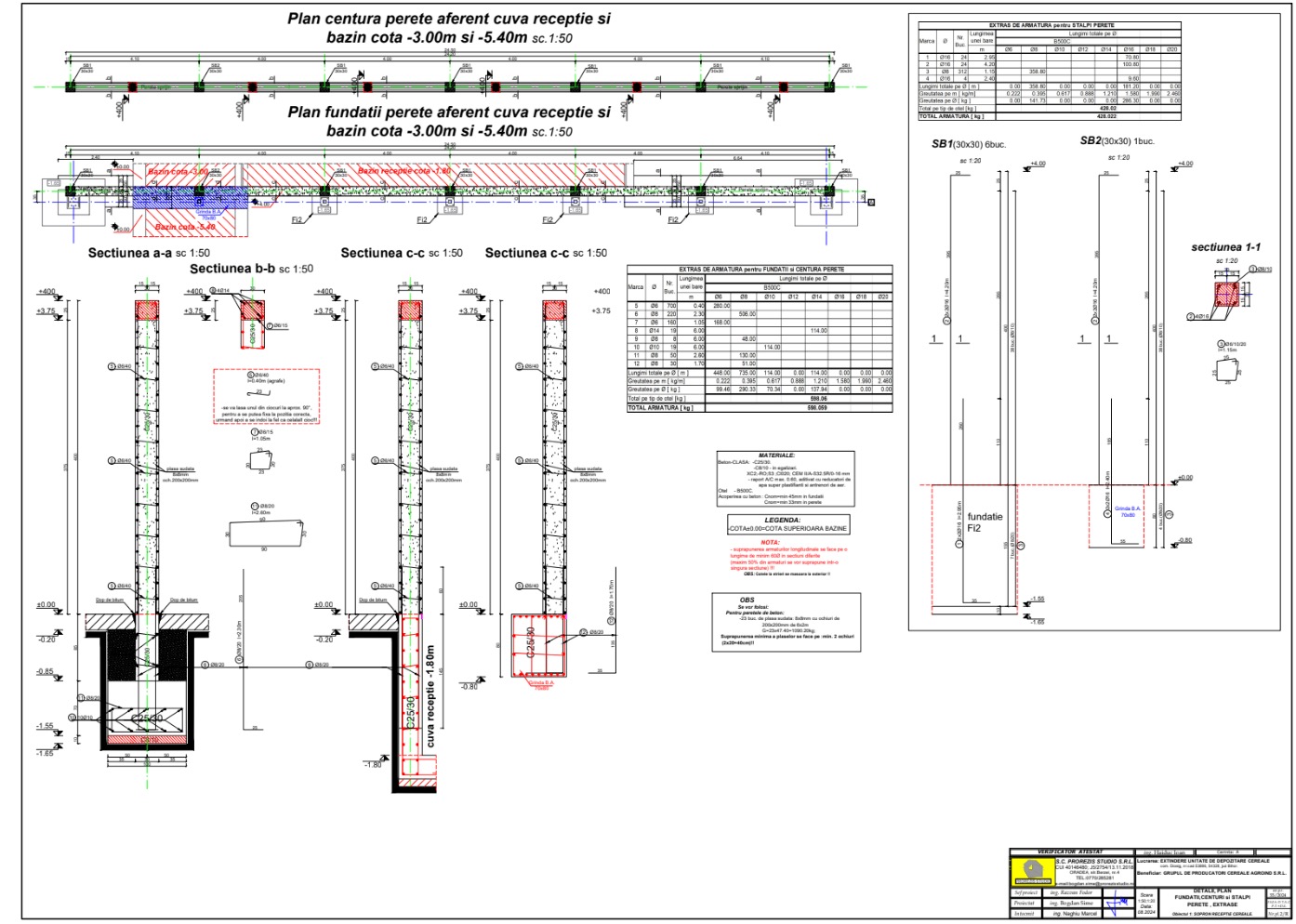 • Plan fundații și detalii (Ob.1) + extras armătură