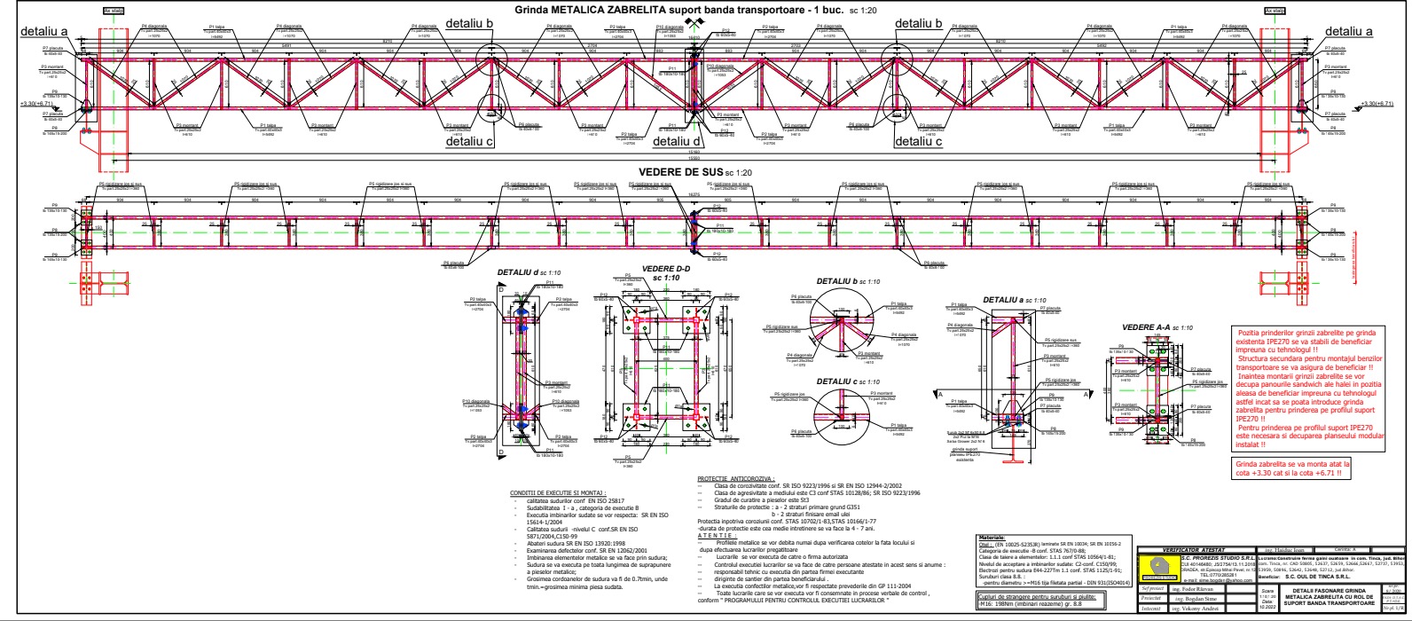 • Piese metalice din oțel OL S275JR, categoria execuție B, suduri electrice continue, nivel acceptare C2