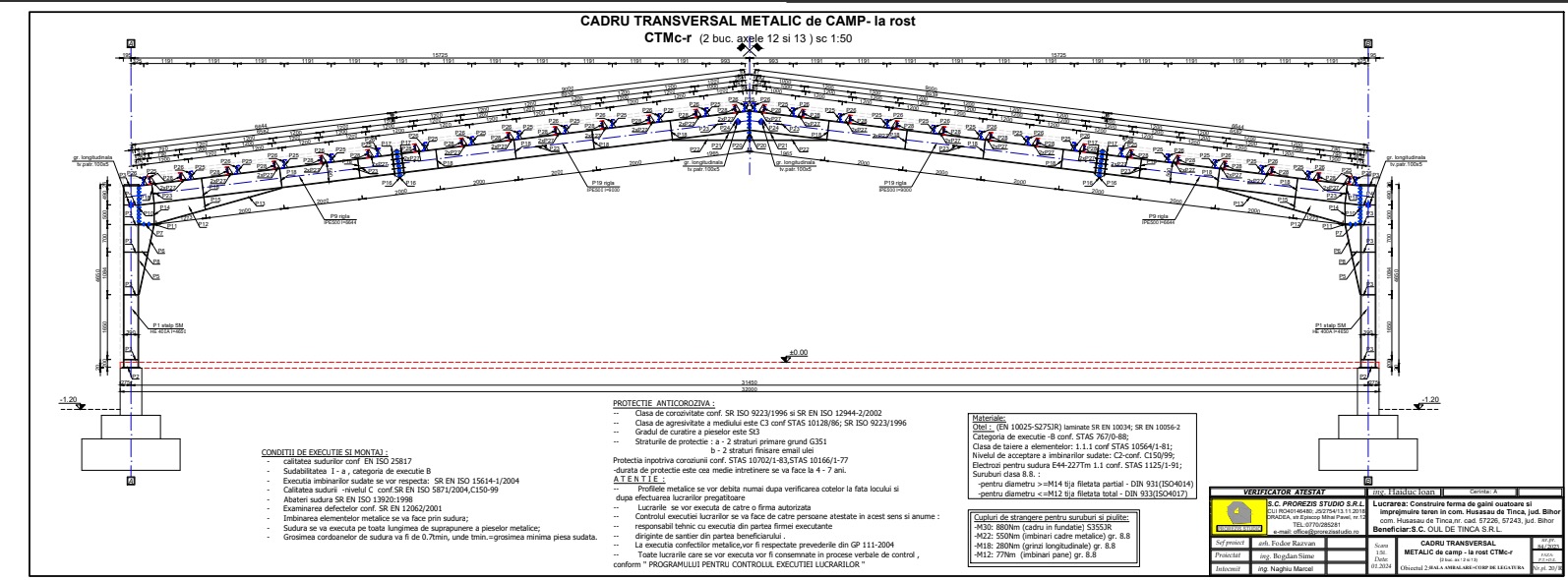 • Elemente metalice OL 37 (S235JR), execuție categoria B, suduri electrice continue – nivel acceptare C2;