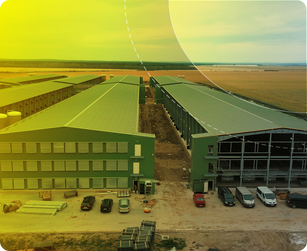 Proiect complex pentru construire hală ouătoare, hală ambalare, utilaje, incinerator, platforme, bazin, cântar auto, dezinfector rutier şi împrejmuire. Lucrarea vizează dezvoltarea unui ansamblu agroindustrial modern.