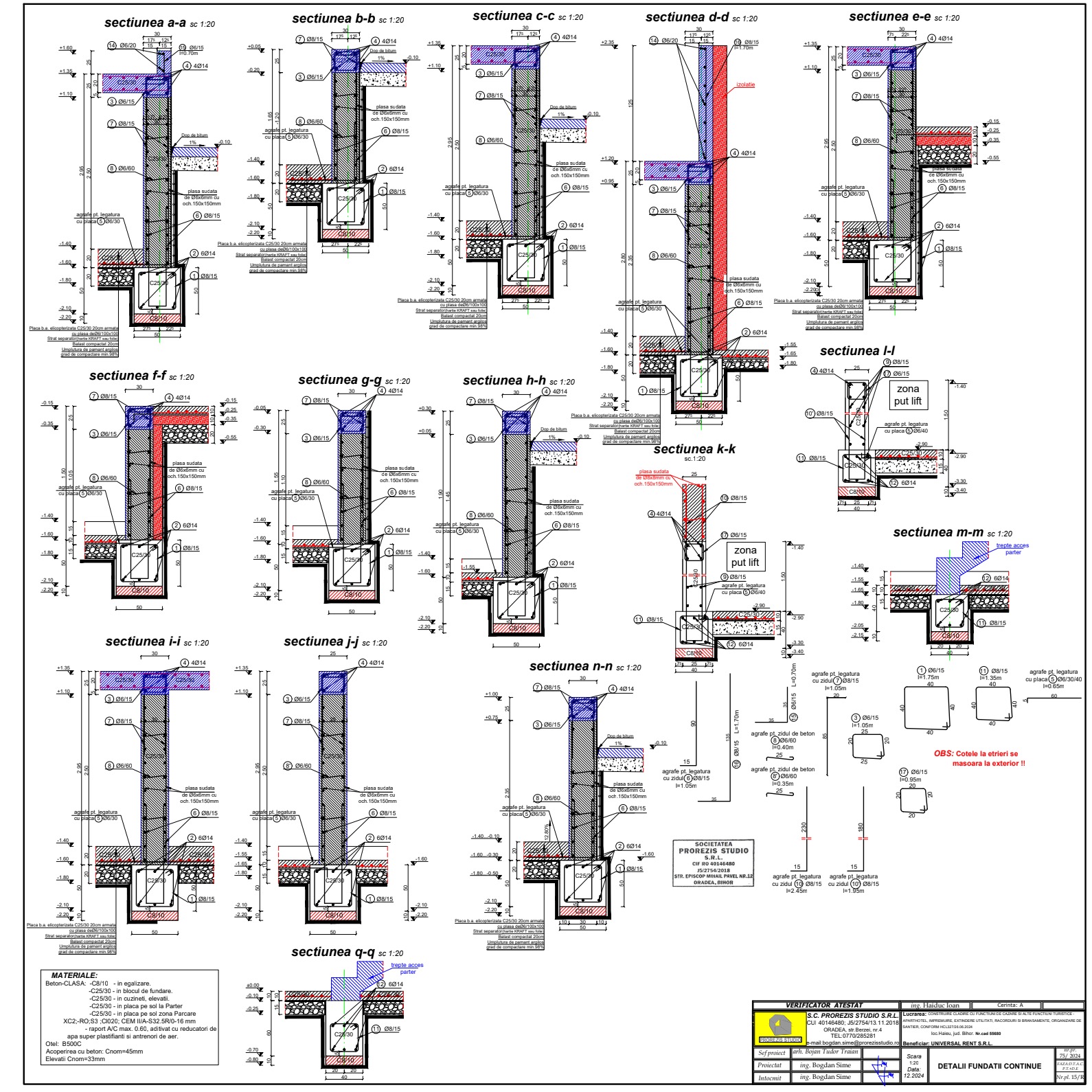 • 11–14/R – Detalii fundații continue și pereți b.a.
