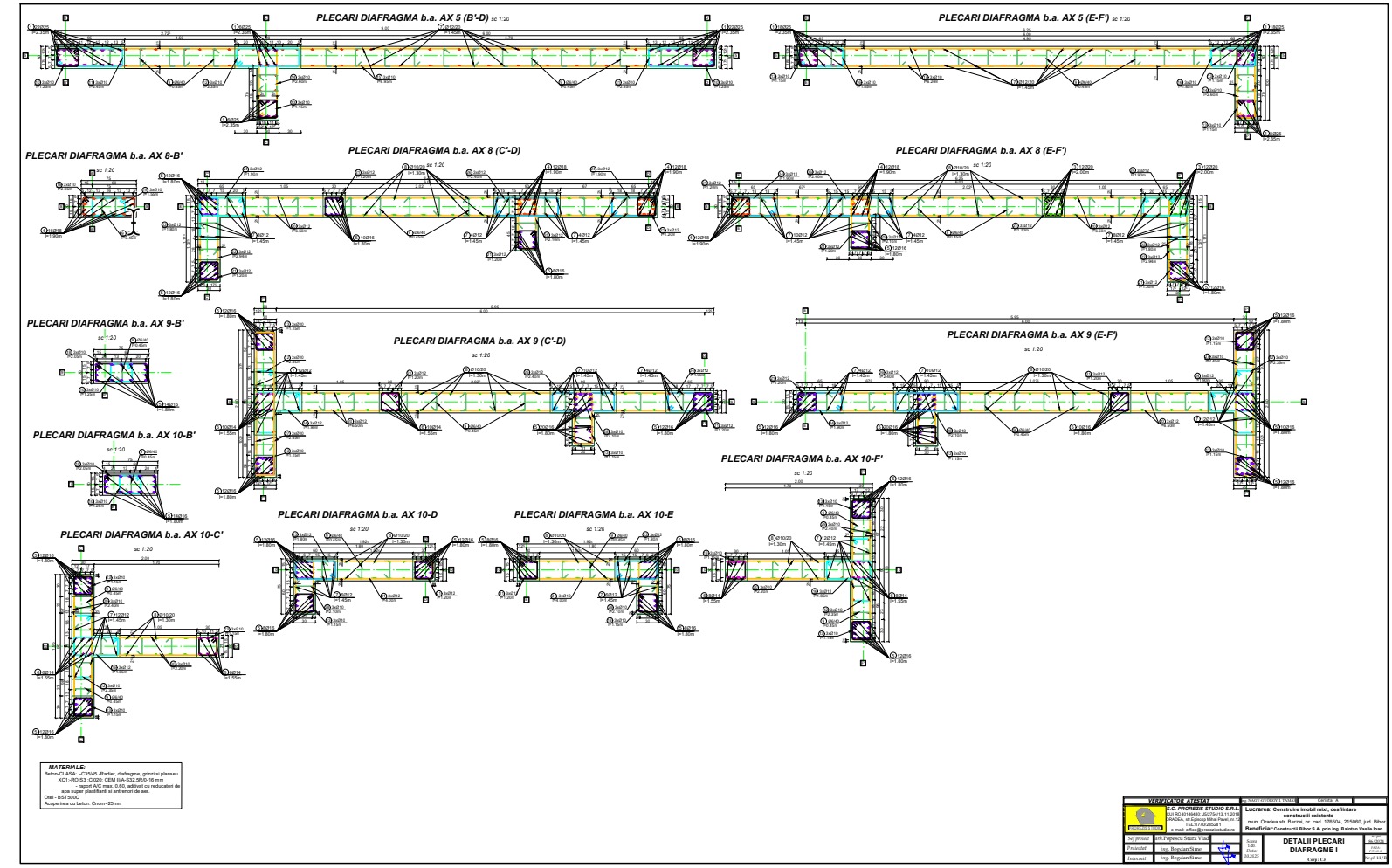 • Detalii grinzi transversale/longitudinale + extrase armătură
