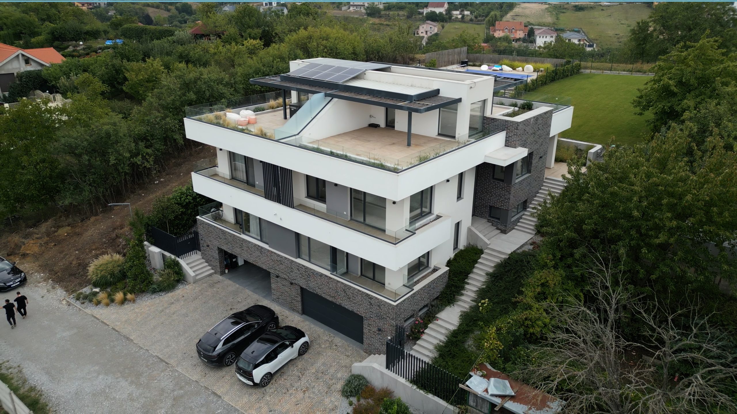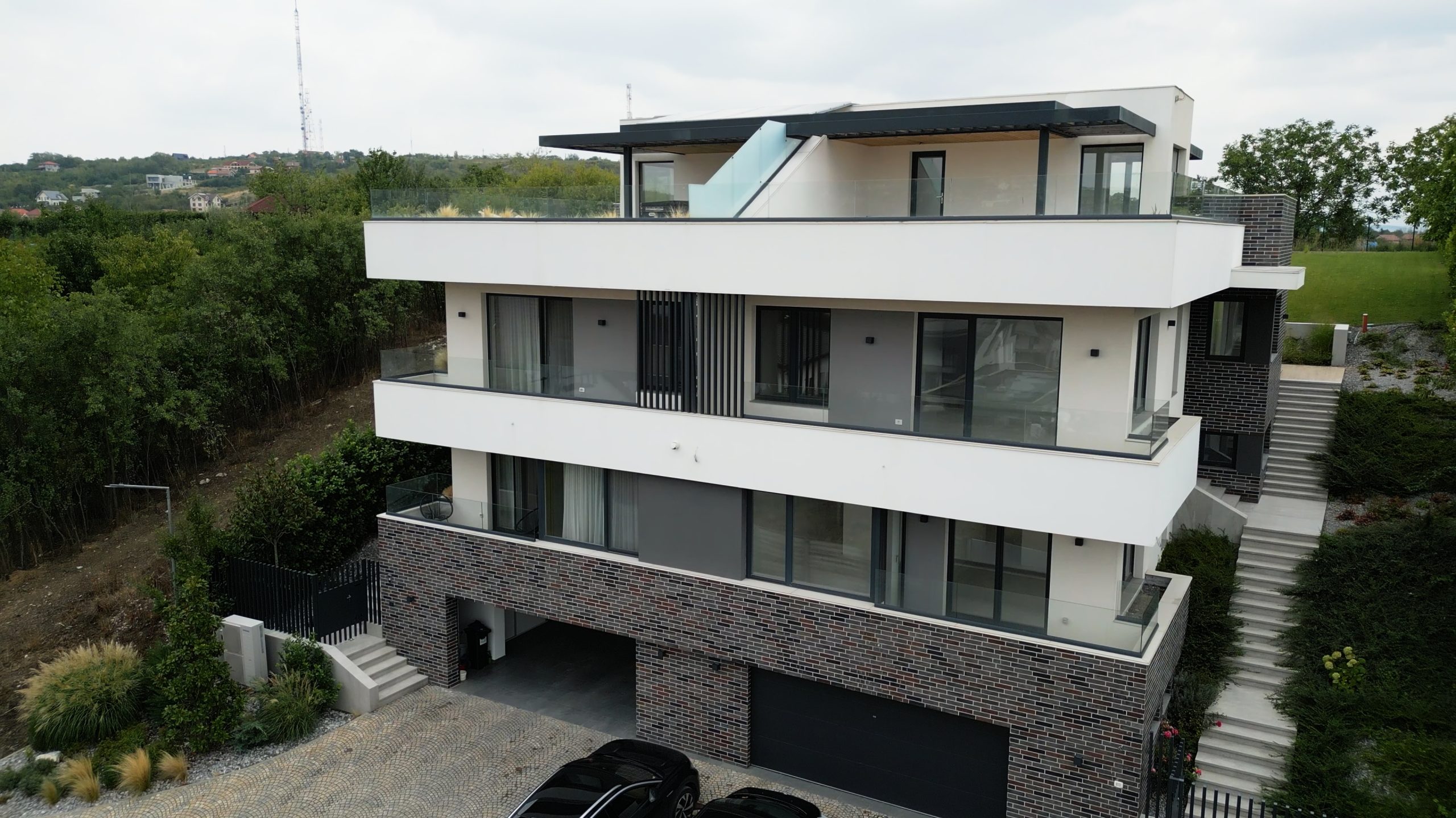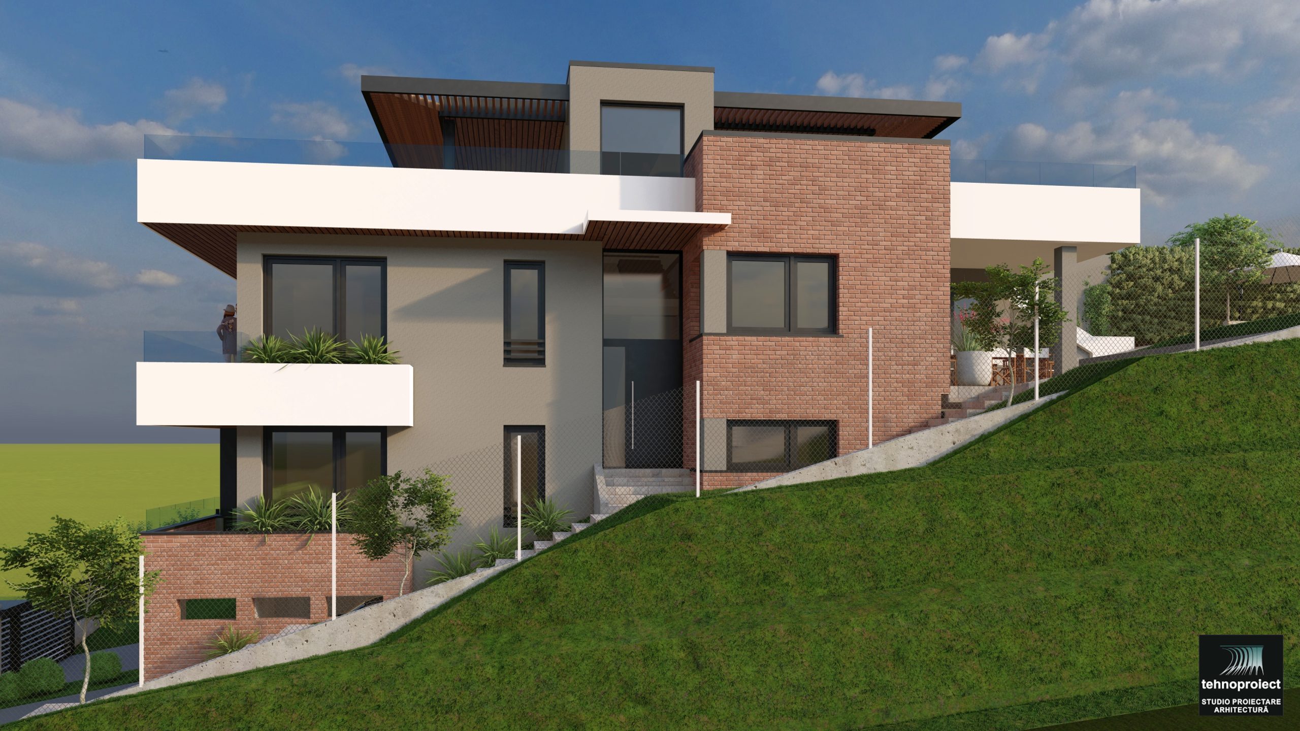 Proiect pentru construire casă Duplex P+E, compusă din două unități locative pe trei niveluri, cu regim de înălțime Demisol + Parter + Etaj și terasă circulabilă.