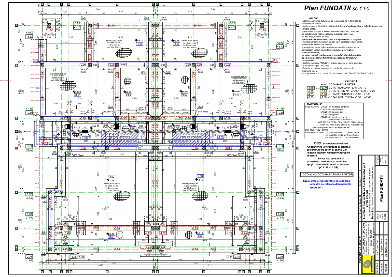 • Confirmare teren bun de fundare de către geotehnician înainte de turnarea betonului