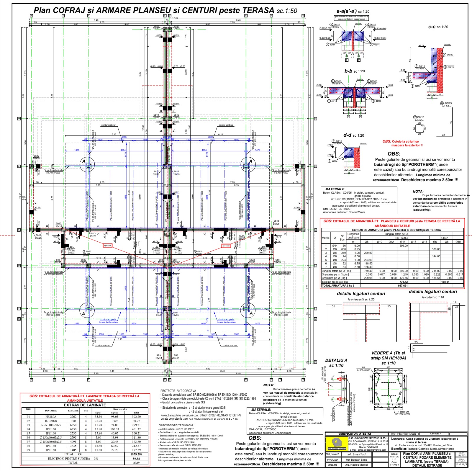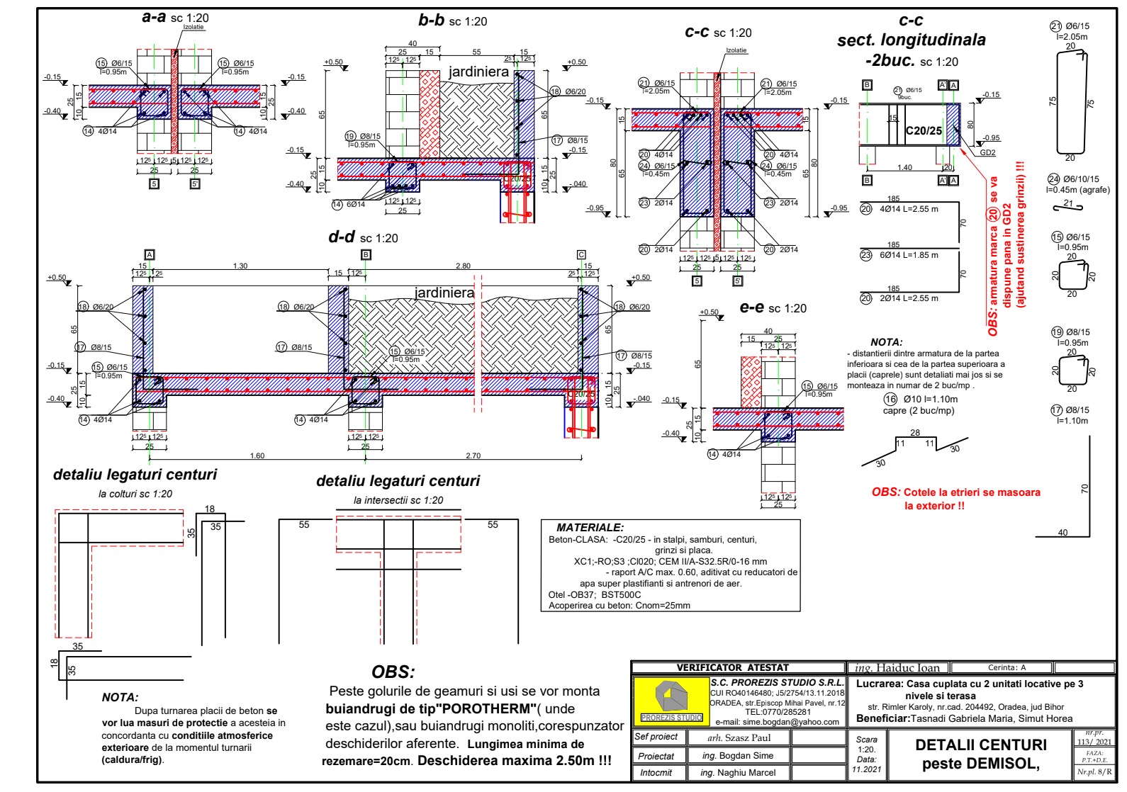 • Detalii centuri, grinzi, stâlpi și sâmburi