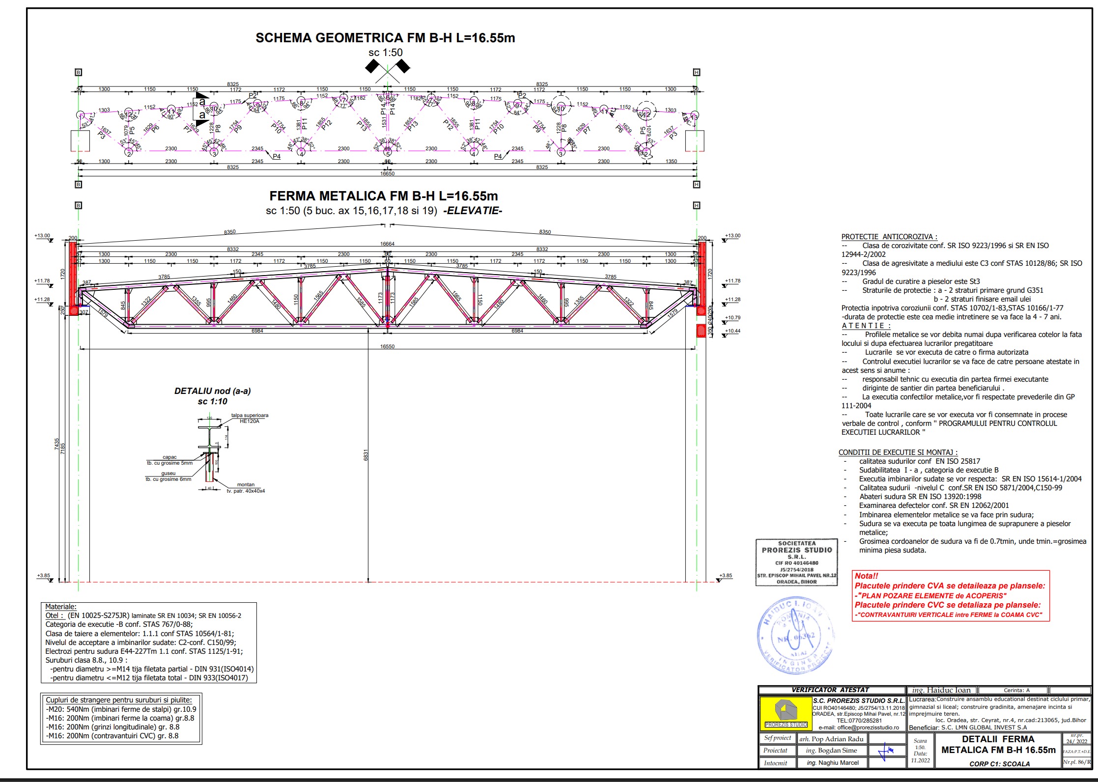 • Sudură: Nivel C2 (C150/99), electrozi E44-227Tm 1.1 (STAS 1125/1-91)